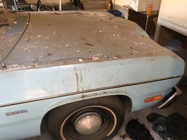 Its a freakin stripper Duster with a slant six and a slushbox. Yes its covered with bird poop or whatever. The seller did nada, zip to make it presentable or to even try to get it running. What “NORMAL” if there is such an animal, car nut, would do that?