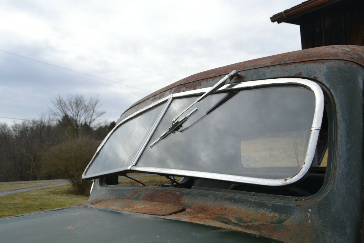 One of the really cool features is the crank-out windshield, allowing flow-through ventilation into the cab. The seller states that the front windshield is crack-free and operates smoothly. The rear window is missing but is easily sourced.