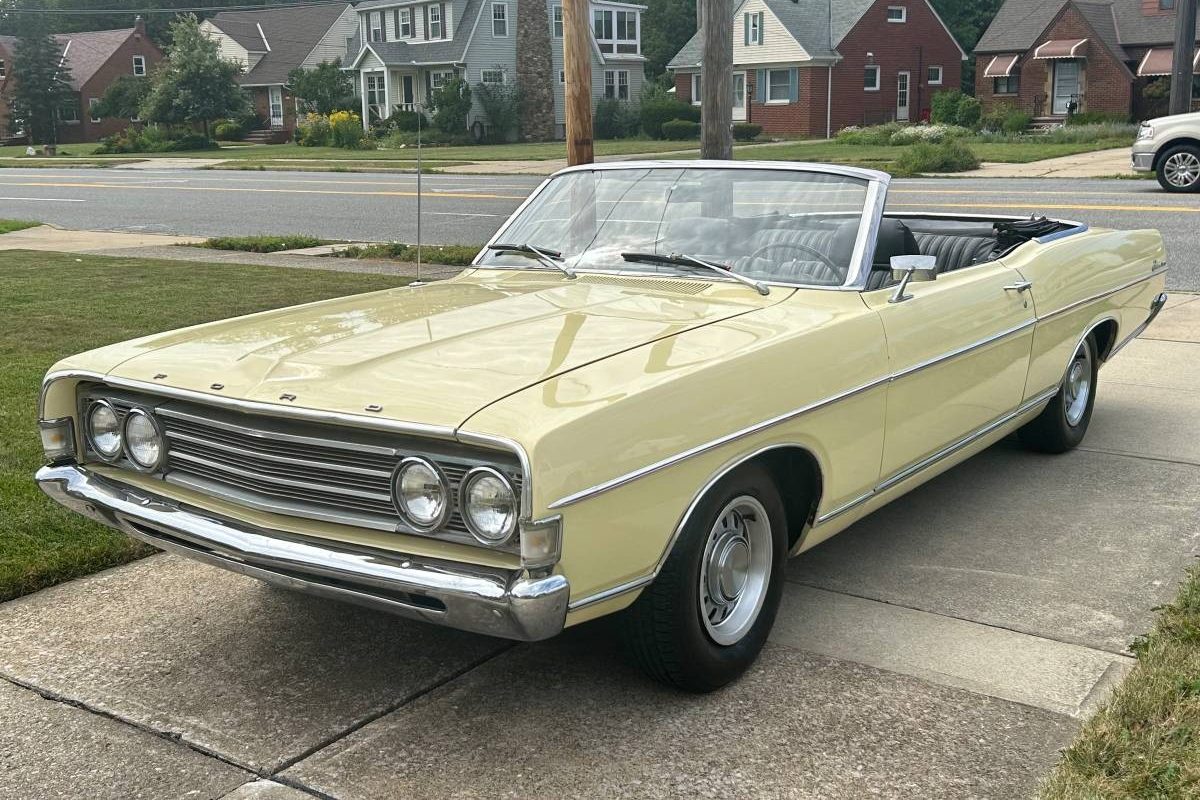 The Fairlane badge first appeared on a Ford model in 1955 and would remain available until the end of 1970. The Sixth Generation, launched for the 1968 model year, enjoyed a brief two-year production life. This Fairlane 500 Convertible rolled off the line in 1969, featuring classy Meadowlark Yellow paint and a new Black power top. The seller describes it as a driver-quality classic, and its overall condition is guaranteed to turn heads. The paint shines beautifully, the panels are straight, and its garage-kept history has left the Convertible rust-free. There is no evidence of accident damage or other problems, and the glass and trim are spotless. The sports wheels are the icing on the cake, and their condition is as impressive as the rest of the exterior.