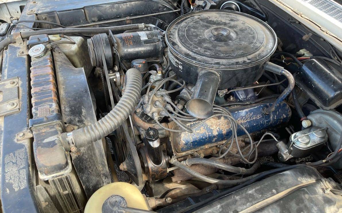Under the hood, we have a 429 cubic inch V-8, a jump up from the 390 offered the previous year in the DeVille. The 429 is mated to a Turbo-Hydramatic transmission and no word on whether or not either has ever had a rebuild, although the seller does say that the car is running and driving. The engine compartment definitely looks original, and I always loved those valve covers with the Cadillac logo that General Motors used during this time period.