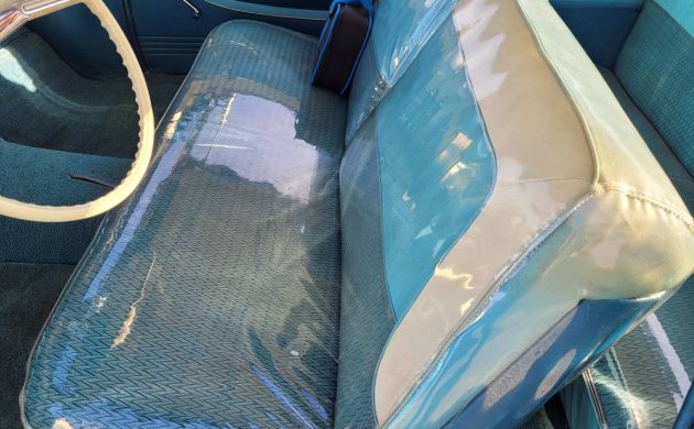 Apparently, the car has never “lived off Vancouver Island,” so the seller would prefer to sell it to someone who lives there. It was supposedly repainted once, “likely in the ’80s.” The color doesn’t seem to quite match any of the 1958 Oldsmobile color chips (I’d say it’s closest to “Tropical Mist”), but either way, it’s a beautiful color with dark accents. There is some light rust in the rocker panels (no pictures shown), but it looks pretty solid overall.