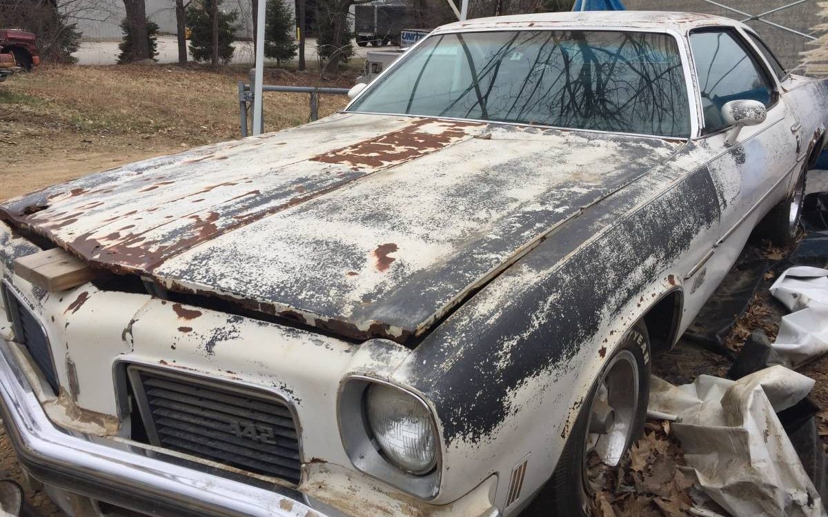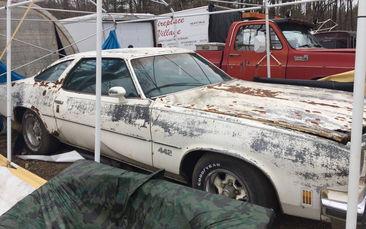 This 1974 Oldsmobile 442 was found in a New Hampshire barn. While it isn’t clear how long it spent there, it really looks like that time in the barn has not been kind to the car. It will be interesting to see what our readers think of this one and whether any of you would be willing to take it on. Barn Finder Dan V referred the Olds to us, so thank you for that Dan. The 442 is located in Brentwood, New Hampshire, and is listed for sale here on craigslist. The asking price for the car has been set at $6,500, and apart from the overall condition of the car, the other bad news is the fact that the title has been listed as missing.