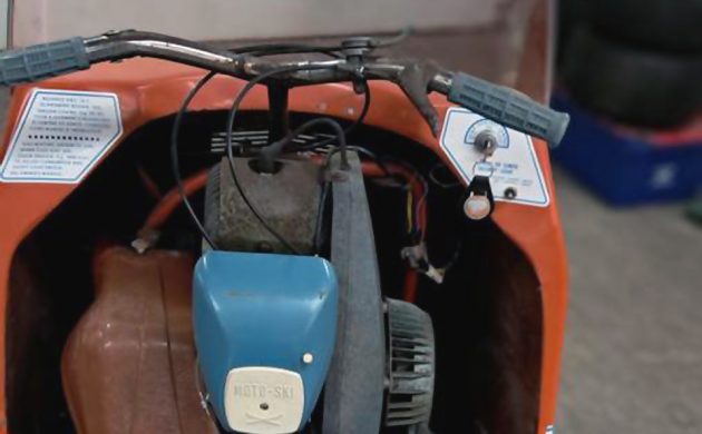 The engine here is a 317-cc Hirth single-cylinder with around 20 horsepower, and the seller says it “runs good.” I can hear it idling now in my brain; memories are weird. I can also feel my numb hands, rock-hard and frozen right thumb from pressing on the go lever, and I can somehow smell gas. They always smelled like gas, and so did we after a ride, since halfway to anywhere, it would die and you’d have to dig out one of your 17 spare sparkplugs and try to get it started again. We thought nothing of it; that was just the way it was back then. Have any of you owned a Moto-Ski from the 1970s?