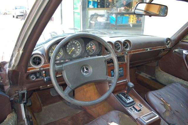 Lifting the lid on the engine bay provides both good news and bad. The drive-train is original, meaning that the engine is the 4,973cc V8, which produced 237hp when new. This power was sent to the limited-slip rear end via a 4-speed automatic transmission. In addition to power steering, the SL also features 4-wheel disc brakes with ABS. That engine was enough to propel the Mercedes to a top speed of 140mph, meaning that it really was a car that was happy to cruise on the German Autobahns. Now the bad news. The SL doesn’t currently run, and the owner has made no attempt to get it running. It appears that the engine may not have been started since 1982. That will mean that the fuel system is going to require a complete flush as a starting point, but given the complexity of these engines, there may well be a lot more work to come before the Merc is ready to fire a shot in anger once again.
