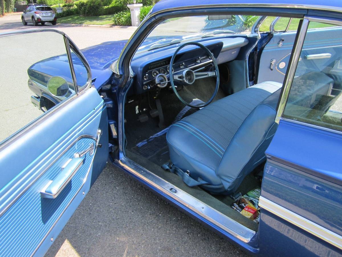 I love the fact that this car has the 2 tail lights per side, like a C2 Corvette. It actually looks better, IMHO. What a great project car that would be fun, with no major bodywork to weigh down and take the car offline. That 283 could be made even nastier and a floor shift, 4 speed conversion would be really cool. I think this one deserves to be more OEM than restomod, but I could see someone being really tempted. Some disc brakes and an after market AC would make this car even better. Sweet bubbletop : )
