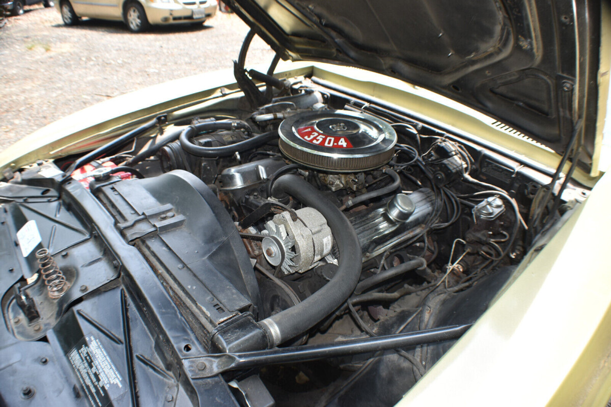 Hi, It’s nice to see one like I had in late 70’s!! I had a 400 w/ac ! Try changing the back 2 spark plugs!! The more i look at the engine compart…what’s up w/2 different value covers? I believe only 400’s got that…also, the inserts between the bumper/core support. I don’t get why no power brakes?… am/fm..ac delux int..v/roof!!! please provide info: engine/trans/ vin&engine code!! history would be nice!