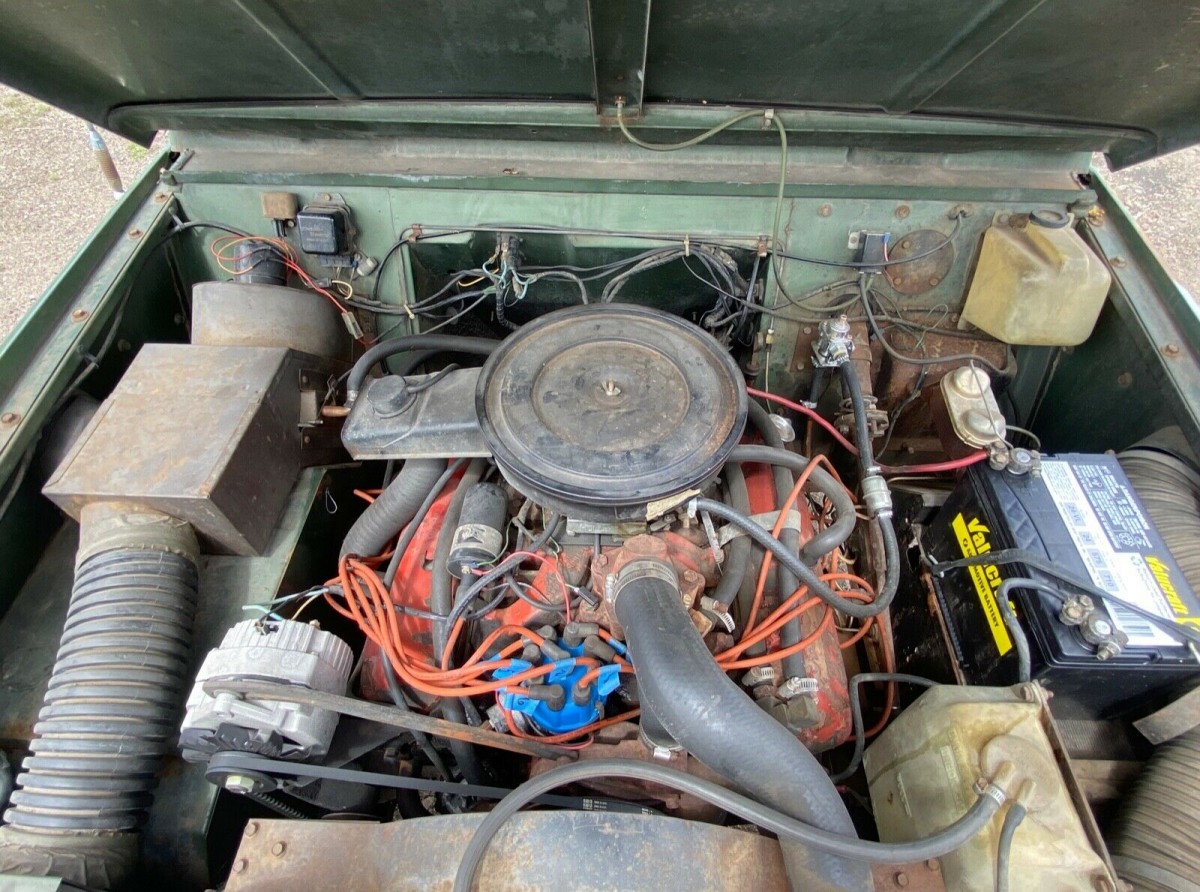 The first Scouts were equipped with a 152 cubic inch inline four cylinder engine that came from the factory with 93 horsepower. As the Scout evolved, later models had bigger and more power engines including a larger inline 4 cylinder, an inline 6 cylinder, a 266 cubic inch V8, a 304 cubic inch V8 engine and a 345 cubic inch V8 engine. This Scout 800B has the biggest engine available which is the 304 cubic inch V8 engine. For some trivia, did you know that International Harvester Scout offered the Scout with a Nissan built 198 cubic inch turbocharged diesel inline 6 cylinder in 1979 and 1980.