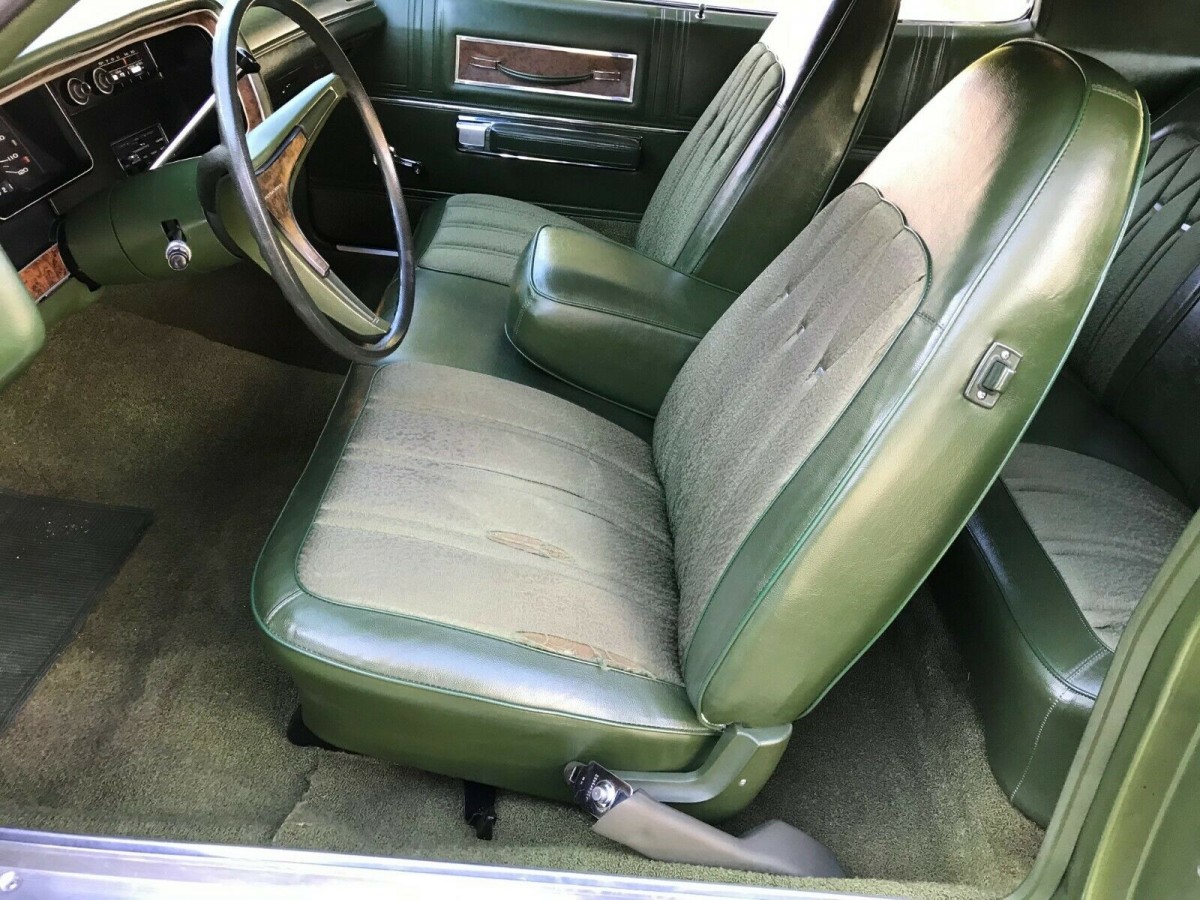 I had an all white 1974 for a while back in the 80’s, when they were just cheap transportation cars (I think I paid $800 for it). Coincidentally, my neighbor had a similar green one, a 1972. It was a smooth, plush highway cruiser, though parallel parking it felt like trying to dock an aircraft carrier – this is a big car!