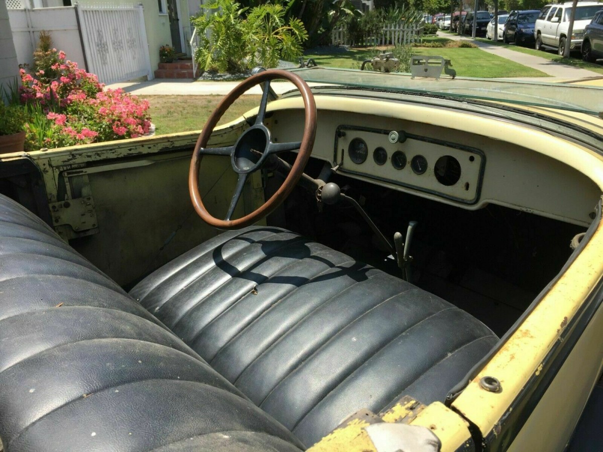 The car is a convertible, so you can clearly see the condition of the interior. The vinyl seats do seem to glisten in the sun. According to the seller, the windshield folds up and down properly, but it does have a crack in it. The top frame is complete and intact, although there are no photos of it. All opening and closing components, like the doors and rumble seat area perform the task as expected. They say the underside of the car is rust free and looks like it has never seen any water.