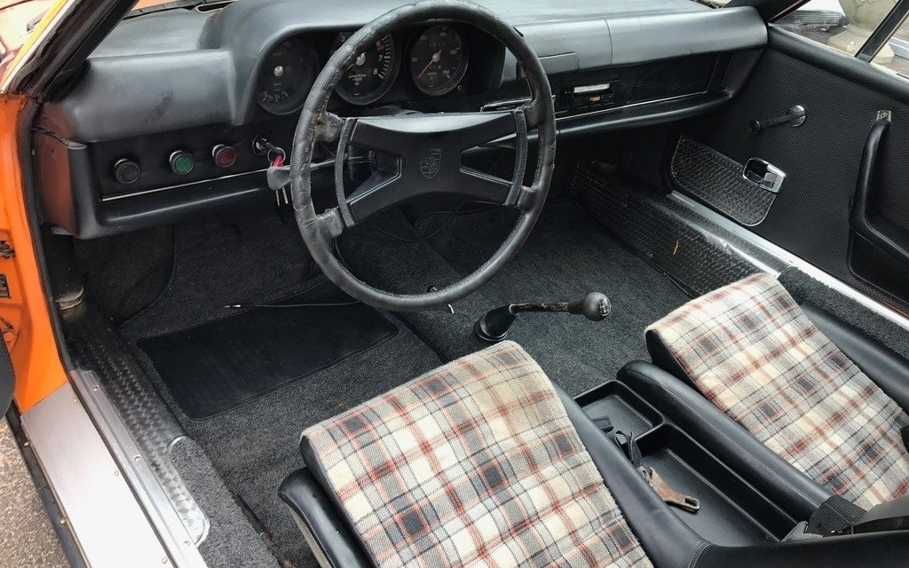 Check out those plaid seats! Things are pretty simple in here. There’s a steering wheel, shift knob, and three big gauges looking at you. The tach is in the middle and the key is on the left. Those are very Porsche-like features for a car that isn’t always accepted as such. Times are a changing though and the 914 is finally starting to get the respect it deserves. It may not be as nicely shaped or as fast as the iconic 911, but the mid-engine design makes for balanced handling.