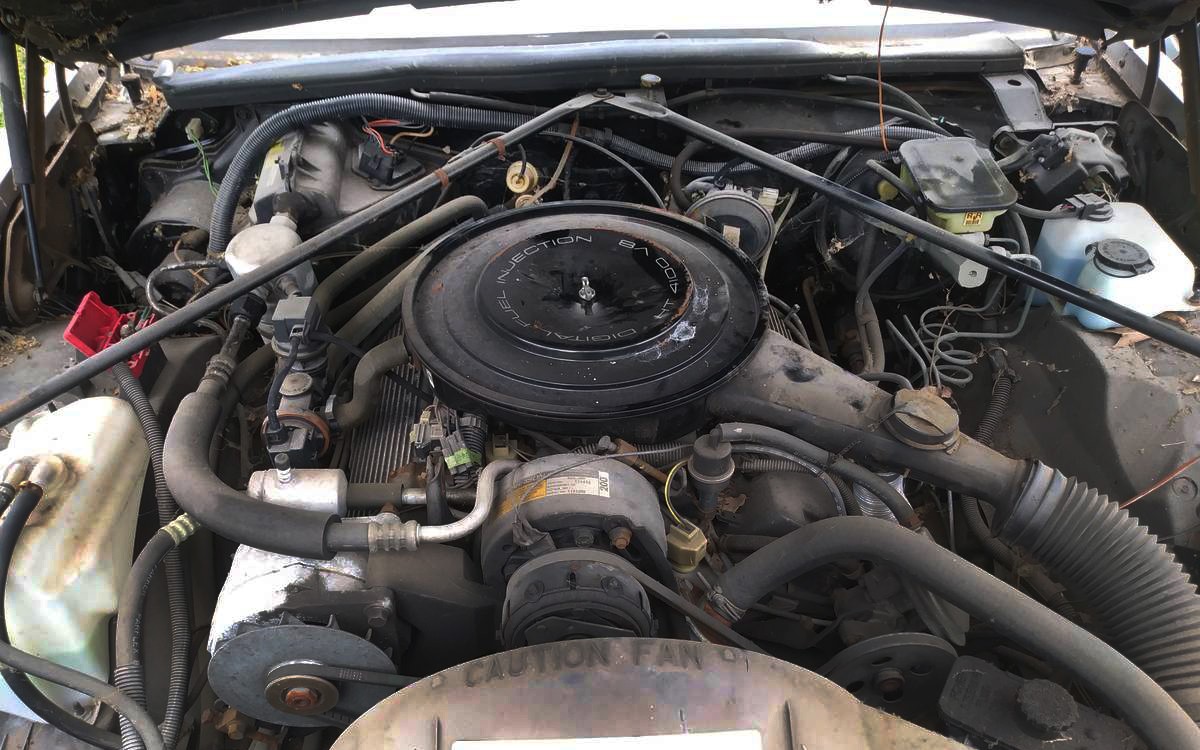 The seller says that this is a 400 engine but I think they missed the #1 after the #4 – it’s actually the same as mine, an HT-4100 (high-technology 4100 cc) (ok, using “cc” for a Cadillac V8 is just weird). It’s a 249 cubic-inch V8 with 135 hp and they are not fast cars. They say that there are only 9,200 miles on this one but they have a 5-digit odometer so I’m throwing out a wild guess that it could possibly have 109,200 miles, but it’s hard to tell. Any thoughts on this Dusty Caddy?