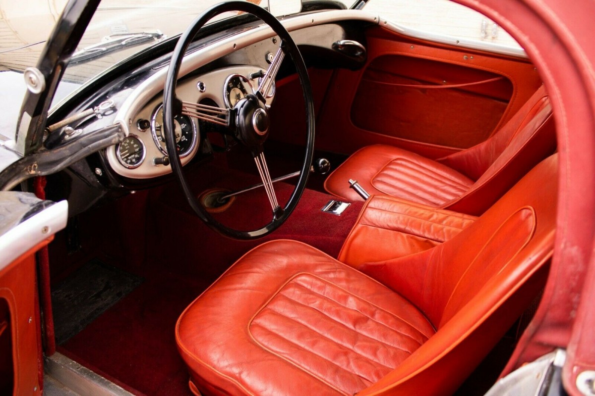 I have to admit it has been many, many years since I’ve seen a Healey with its original interior. Experience tells me this would need to be checked VERY carefully, as there are details that don’t look quite right to me, like the red piping on the seats and the pad on the center tunnel.. I could be wrong, though.