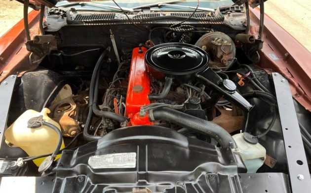 The exterior is finished in Code 66 Fire Coral Bronze and the body is said to be rust and rot free. The original lacquer paint is cracking which is to be expected after all these years. The seller states that the car drives and looks brand new except for the aging paint. This was the last year for the small back window on the 2nd generation Firebird. It rides on white wall tires and has the base wheels and hubcaps. This is not a sleeper. It is a true 6 cylinder cruiser at best!