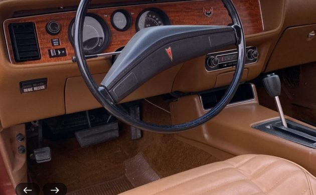 This base Firebird is not heavily optioned and has the base Madrid Morrokide 731 Saddle interior that is just spectacular in its original condition. The engine is backed by an automatic transmission and is also equipped with power steering, power brakes and its factory AM/FM radio. The seller also states that the car is equipped with posi traction rear end. The only gauge in the dash appears to be the speedometer and there is no air conditioning, power windows or tilt. It is simple yet, due to its low miles, beautiful.