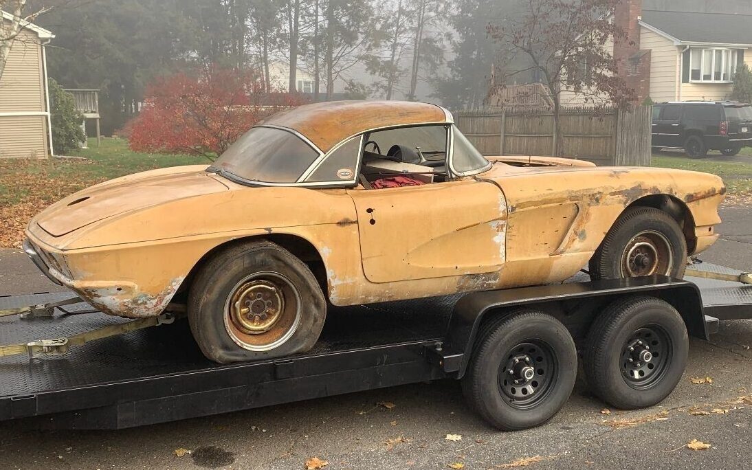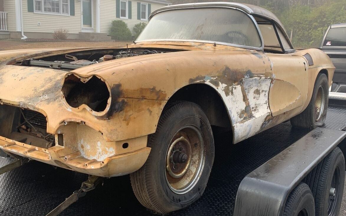 I would say someone wants this car regardless and it will just sit in his garage anyway..some degree of restoration could be performed on the 61..take some serious money but please..someone needs to .get.the fiberglass mix and paint gun on the car..the motor..leave the 65 283 in it and new tires wheels. And do the interior. Presto…a camel or beige color.61 vette is a nice addition..I’ve seen worse cars than this one..someone pull the strings make a offer..take it home and send us pictures in 2025..rj