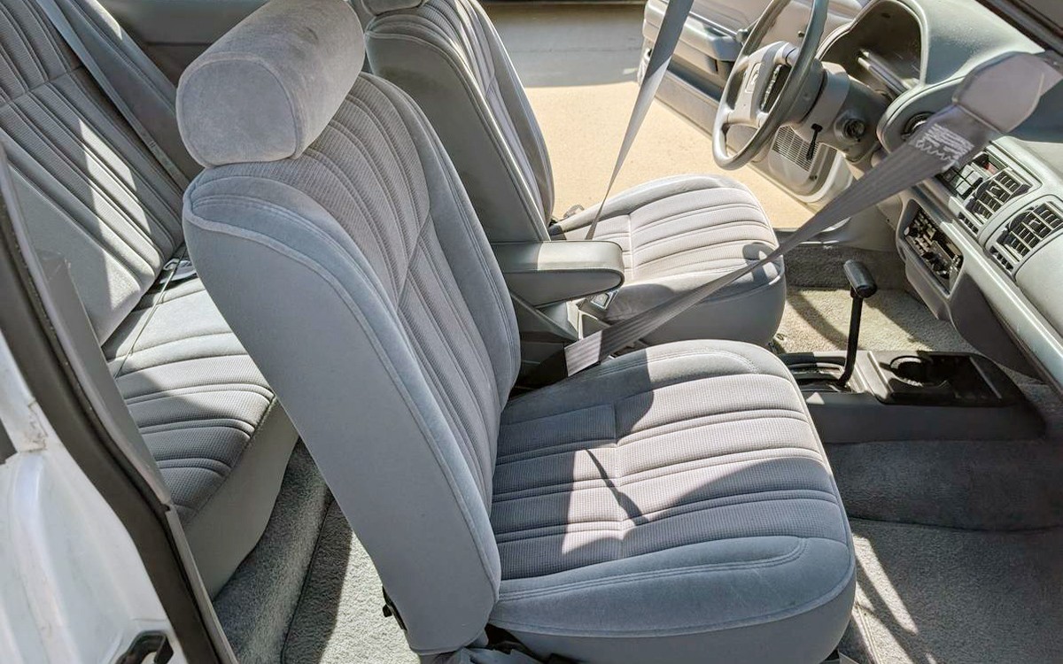 The automatic seat belts may keep me from buying a car from this era, sadly. Unless one of you knows how to change those out to something easier to live with? Dual power side mirrors are standard on the GS, something that a lot of us thought was pretty luxurious in 1994. Oxford White paint and a light gray velour interior isn’t the most exciting combination, but it works, and the seats look great.