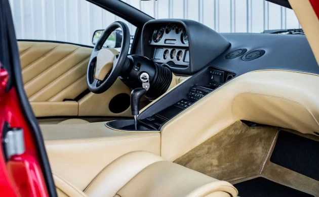 The Chrysler influence was most noticeable in the cabin, where the comfort levels were surprising for owners who were used to the cramped conditions of the outgoing Countach. Leave it to an American car company to recommend creating some added space inside and perhaps thicker carpeting underneath your feet. I don’t have the specifics on how Chrysler convinced Lamborghini’s designers to adjust the interior for American tastes, but the Diablo is certainly an easier car to drive for a few hours than the Countach. Interestingly, despite its lack of use, you can still see evidence of the material on the dash wrinkling or coming unglued from the lower surface.
