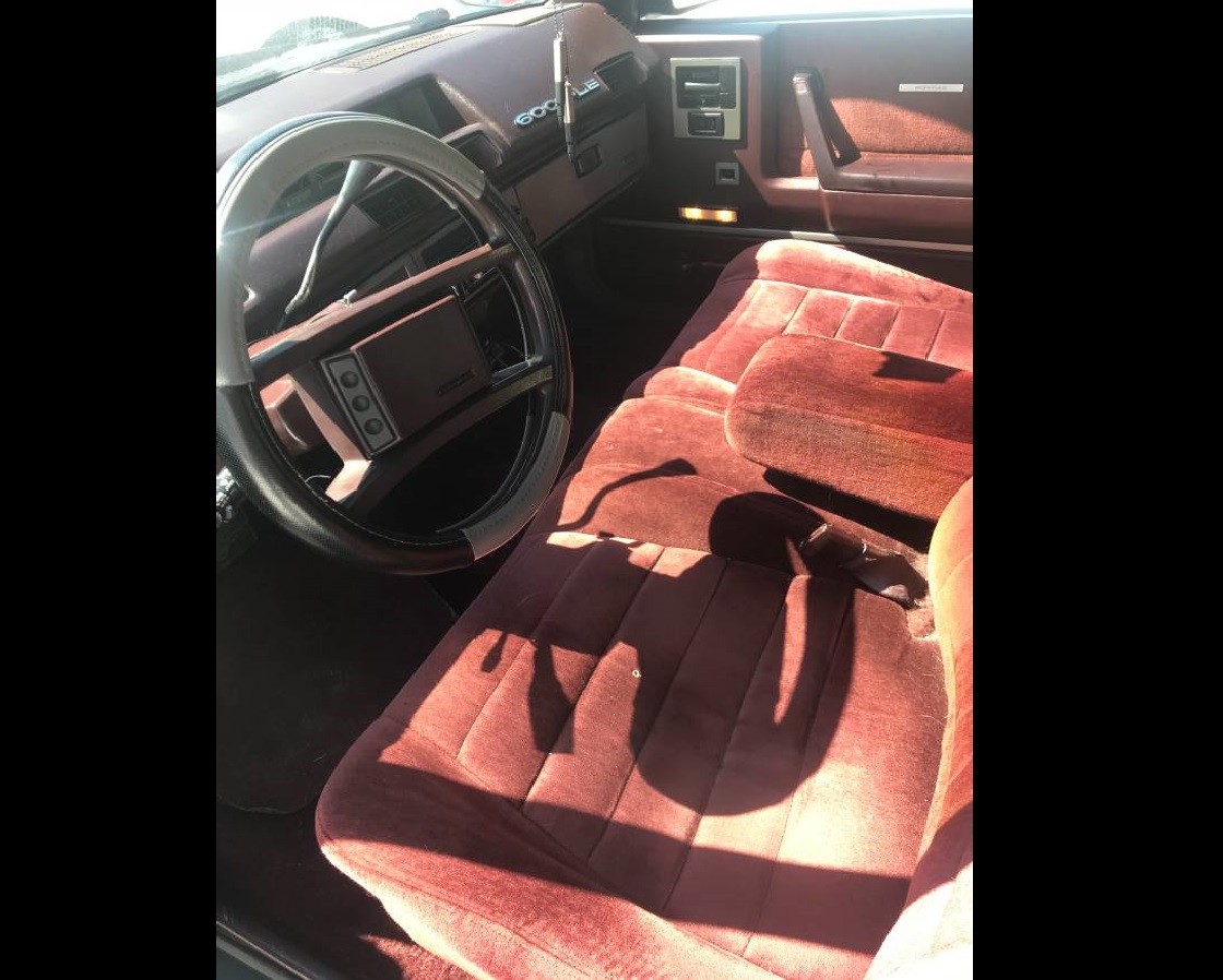So, why this car? As I mentioned above, it’s a survivor – one of the “throwaway” cars from Reagan’s days that didn’t get treated like something disposable. It’s got a V6, front-drive automatic transaxle, velour seats with some controls on the steering wheel, the optional luggage rack on the trunk, and only 98,000 reportedly-original miles. Additionally, the seller has a laundry-list of repairs which have been performed, and a couple of silly upgrades like a Flowmaster 40-series muffler.