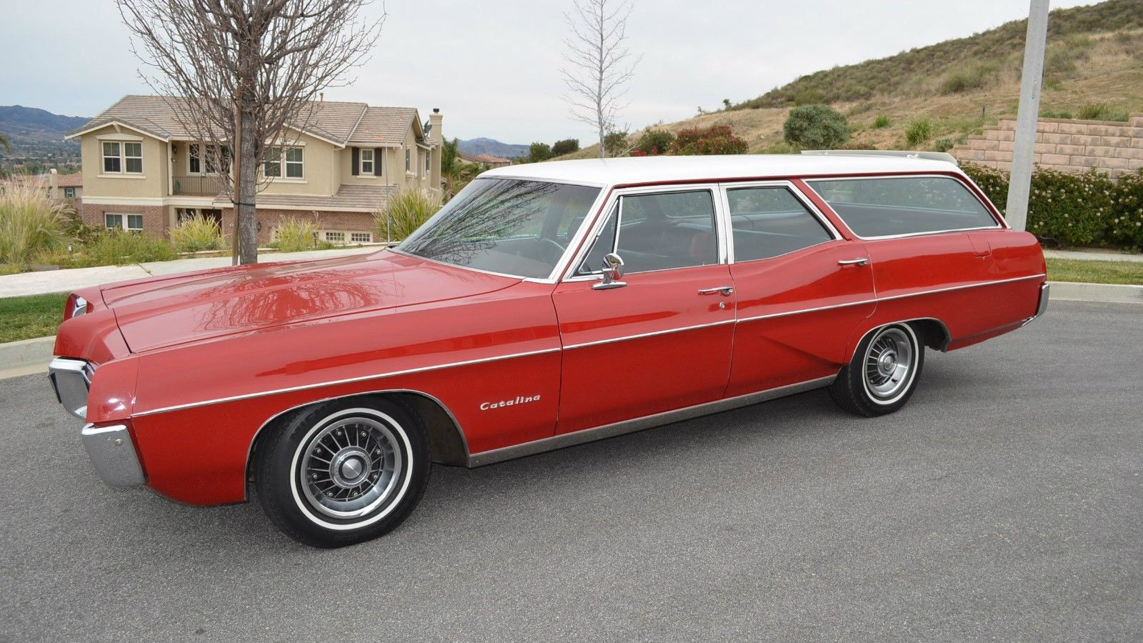 Just look at that glossy red and white paint. We’re told it’s all original and that the wagon has 82,486 miles. Of course, the 8-lug wheels are a special find and they look terrific! Note the shiny chrome and complete trim as well.