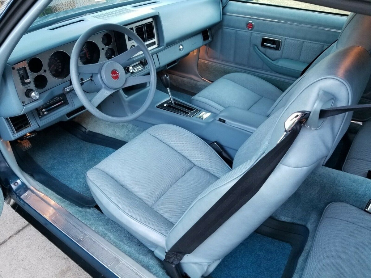 Light blue was a very common interior color in late 1970s Camaros and Firebirds, and other GM products for that matter. My 1979 Z28 had it, as did a 1978 Impala I owned. And a friend of mine had a 1979 Malibu with the light blue interior as well.