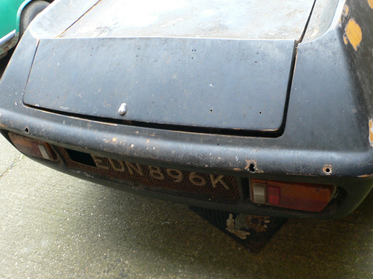The seller believes the 45,641 on the odometer is “…probably genuine” due to the overall solid condition of the Lotus. The body does appear mostly straight with good lenses front and rear. It does appear some of the body has separated just beneath the right-side taillight as you can see here. Badges are gone as is the thin chrome rear bumper. The seller does mention that the body was “partially stripped” at one point in time, likely for a restoration that never got off the ground.