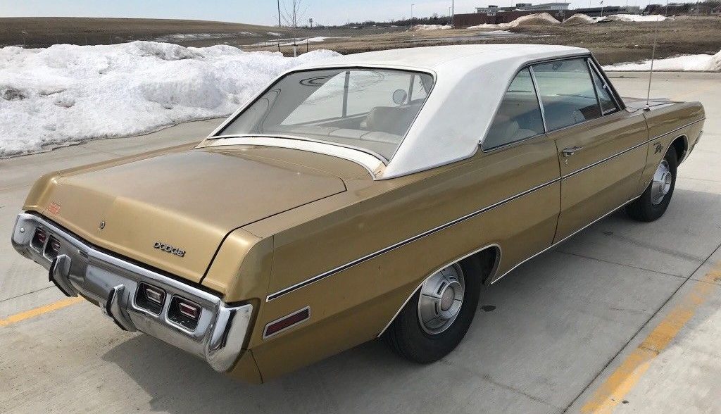 I had a 1971 Dart Swinger like this except it was Burnt Orange with Black Vinyl top. It had the 6 cyl, no AC. My father picked it up in 1983 for 25 dollars because the person thought the engine was bad. It only had a bad starter. It had about 70000 miles on it. I sold it when I bought a 71 Olds 88 Royale which was promptly totaled when I was stopped at a red light. Glad I did not have the Dart for that incident.