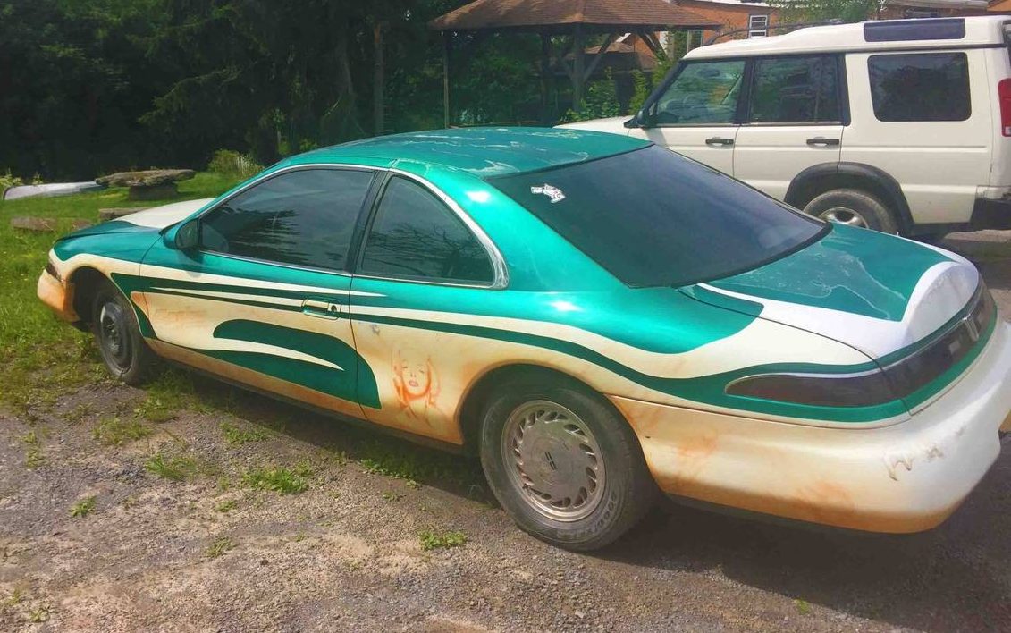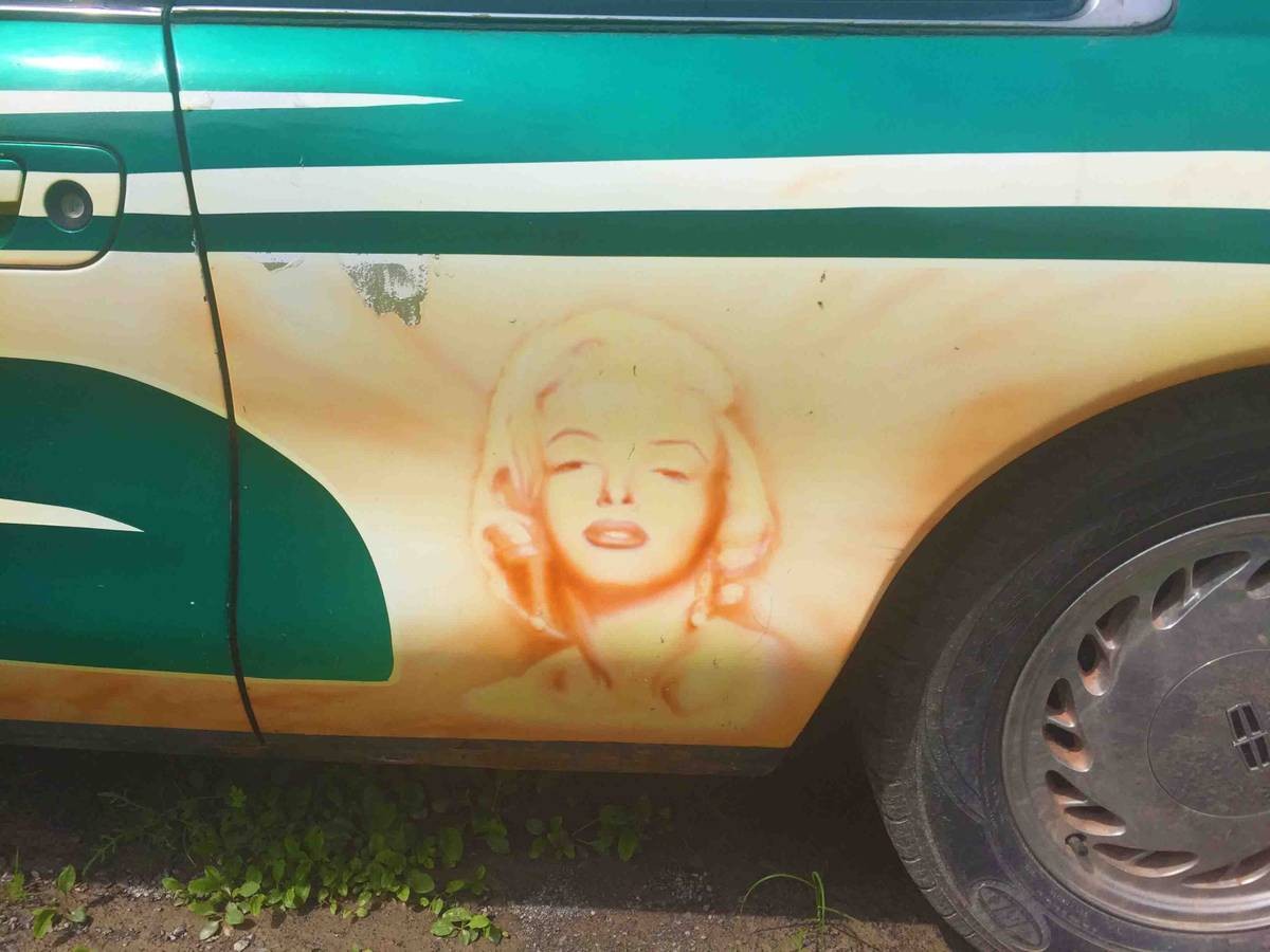 Once you’ve stopped dry heaving and you’ve gotten over the initial shock of taking in the custom paint job on this Mark VIII, take a close look behind the driver’s side door. No, your still-watering eyes aren’t playing tricks on you – it really is an airbrushed portrait of the “Blonde Bombshell,” Marilyn Monroe! Upon closer look though, is it really the work of a deranged artist or could it be an accidental apparition of Marilyn’s likeness in dust after someone took this baby for a joyride down a dirt road? You know, like a potato chip someone finds every now and then with the likeness of a deity on it. Perhaps the only way to know is to contact the seller of this “Marilyn Monroe Lincoln” through the ad here on Craigslist. Offered at the spammer-like price of $1,397 this car is available in Stamford, New York along with one piece of advice from the seller: “Do not rob a bank in this car.”