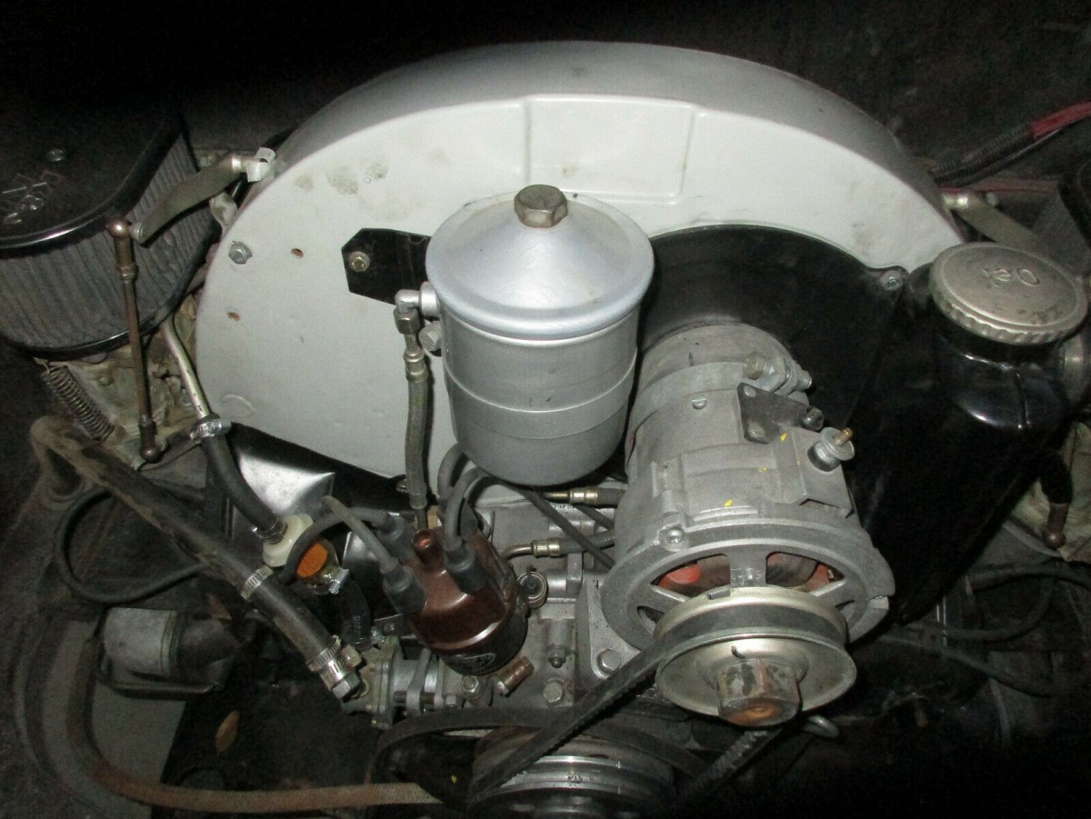 This photo alone stands in stark contrast to most of what we see with 356s these days, as this thing still has floors. The interior doesn’t look bad at all, with all gauges still accounted for along with an OEM steering wheel. I’ve actually never noticed the housings under the dash of a 356 before, and I’m curious if those are speakers or lighting assemblies. I realize I look like a Porsche neophyte with that comment, so please enlighten me. The seller notes that the aftermarket A/C included nicely integrated ports on the dash, visible here.