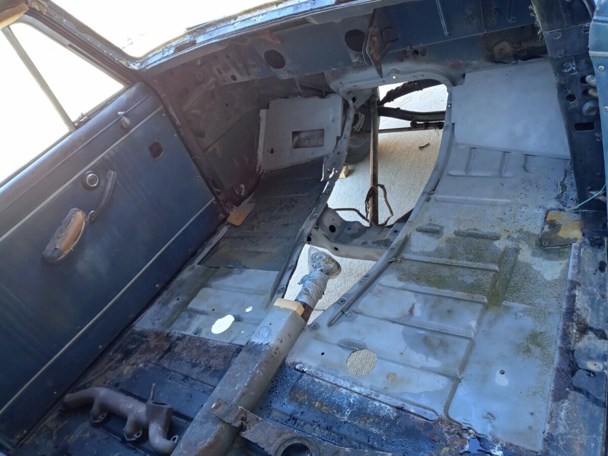 As we can see from the interior picture above, the floor pans await painting, and the dash has been removed. The chrome pieces on the dash have been re-plated, the instrument cluster was restored, and the car has a new wiring harness. In addition, the speedometer is in good shape, as is a spare clock that will be included. Buyers will also be glad to know that the person who started this restoration was very meticulous about the disassembly of the car. Parts were labeled and bagged as the car was being taken apart.