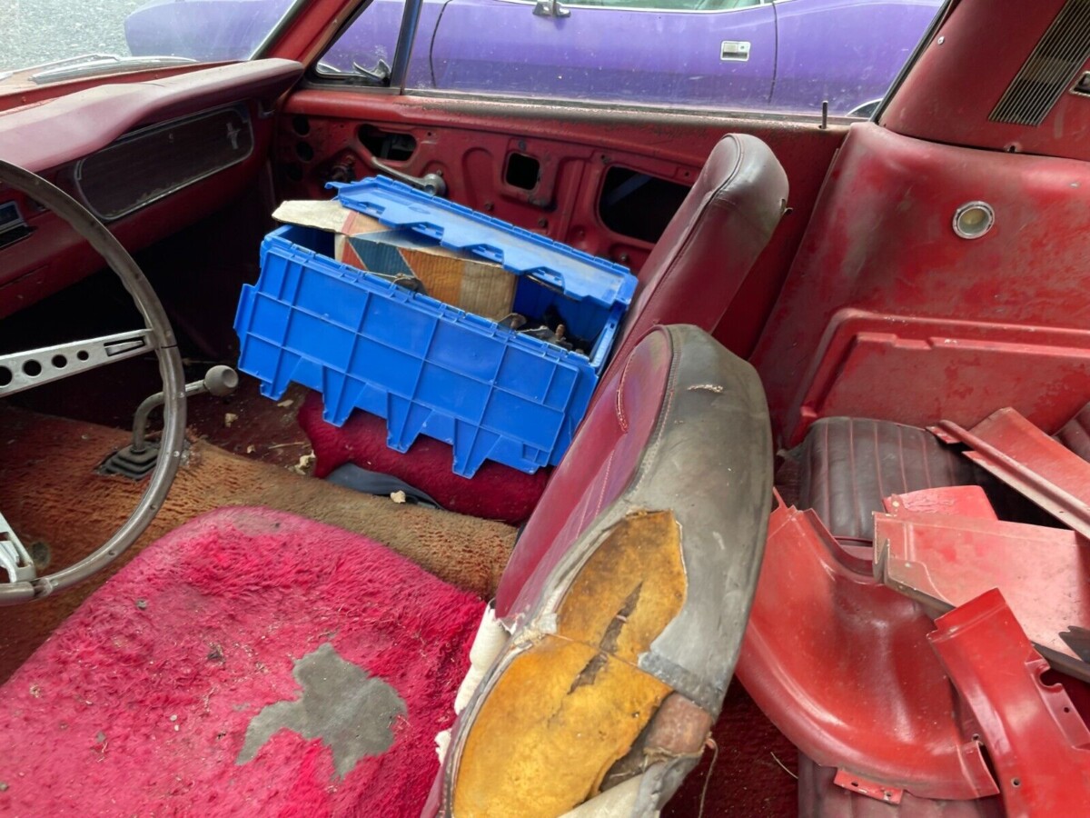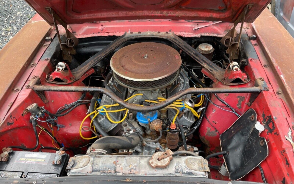 We’re told the V8 motor will turn over and crank, so perhaps it’s still viable. And the evidence is there of a 4-speed manual transmission, although the seller also says it has an automatic. The interior is about as rough as the body, and we assume the red-on-red paint and passenger compartment were how the Ford was assembled. Since little more than two percent of 1965 Mustangs came with the GT package, does that add to the value that this fastback brings to the table?
