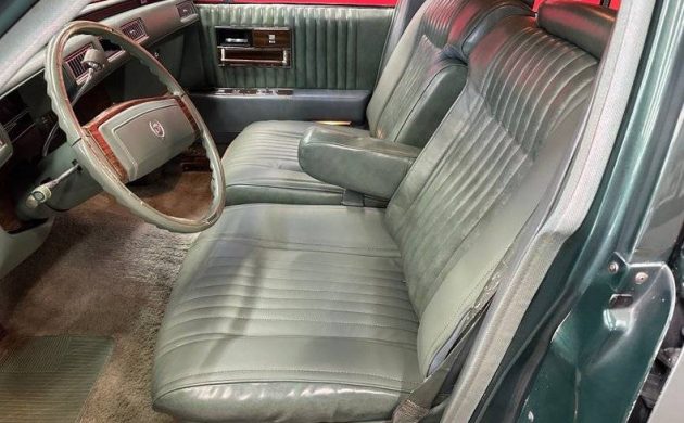 The rear view is my least favorite: I can’t warm up to the “toilet seat” topper on the trunk lid. Since there’s a spare wheel cover inside the trunk, I’m not sure this is even real. Gold “Renaissance” badges are scattered around the car, including two centered on the rear lamps. The crisp-edged styling by Bill Mitchell lasted for years, echoing through the Cadillac line until 1992 when a redesign softened its lines. No question this car’s external cosmetics are in fine condition, but what is its value? Asking prices are all over the lot, running up past $30k, but when we look at actual sales, prices for reasonably nice examples can be in the four figures. Is a Renaissance worth more? My hunch is “no”, but what do you think?