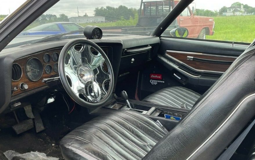 The front end is definitely a ’77, but the tail lights look like a 1976 model. Nice looking body, but what’s up with that steering wheel? Is it homemade? Anybody ever seen one like it before?