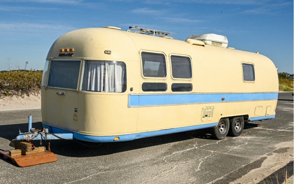 One of the most iconic trailer manufacturers is Airstream, easily identifiable by their shiny aluminum panels and rounded shape. Their classic design has stood the test of time, and even new Airstreams look extremely similar to their counterparts from decades ago. This 1976 Airstream Argosy Bicentennial edition, however, bucks that trend and is actually painted! It’s currently up for sale here on AuctionNinja, with the bidding at time of writing at $2,550. Thank you Barn Finder David for the tip.