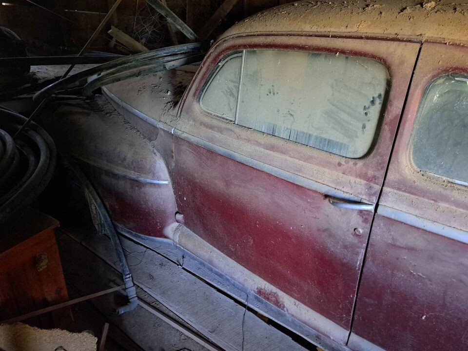 Not a particularly rare car, Ford’s total ’46 production amounted to 468K units which was respectable considering this was the first post-war model year and the previous year’s production amounted to zero. The coupe was available in Super DeLuxe and regular ole DeLuxe trim, 12K and 10K copies, respectively. As for this car, which I believe is a DeLuxe, it has supposedly had only one owner and it now looks like it’s actually perched up in the barn’s loft. It’s covered in surface rust, dust, and other barn mung but it looks complete and still reveals signs of its original Dynamic Maroon finish. The rear window is missing but it shows as the only absent component – though admittedly, there are no images of the front.