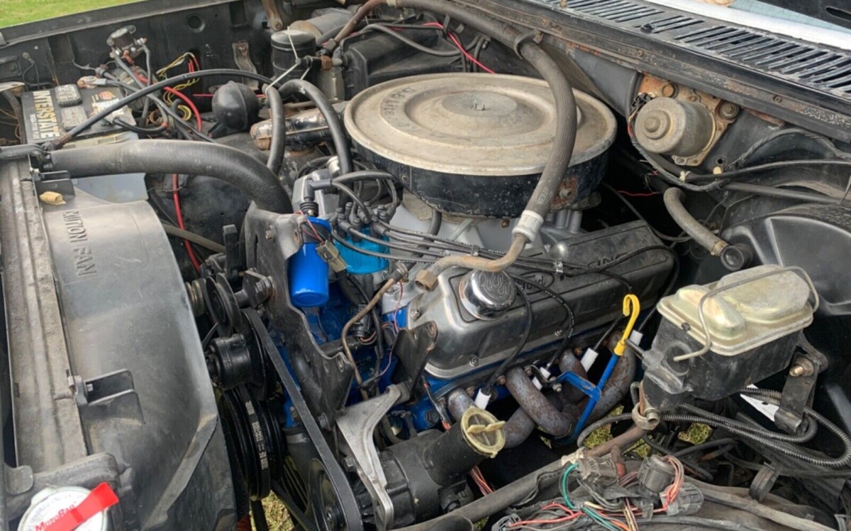 Under the hood is where the truck’s true beauty lies, as it is now equipped with a 1974 block 351 Windsor that’s been bored .40 over, and when the seller says this was a no-expense-spared build he really means it! When you scroll down to the bottom of his listing, a detailed record of the parts used appears, at least all the ones he remembered, and it’s several levels past impressive plus way too much to get into here. Another cool feature is the transmission, as the factory C6 automatic has been ditched in favor of a Borg Warner T18 4-Speed manual. Both front and back gears are 4.56, and I can almost imagine what this short bed must sound like going through the gears with the glass packs. It’s pretty impressive down below as well, with that transfer case sort of stealing the show in the looks department from the underside.