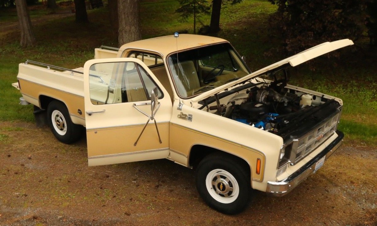 Thank you, Mr. G!! Made my day. ( my truck just got more valuable) 1st, while my truck is a “’77 High Sierra”, it has little in common with this. 1st, I read, the 454 was an option in ’77 for the trailer towing package. This truck, with those little brackets behind the doors, indicates it had a slide-in camper. Somebody detailed the heck out of this truck, probably already a nice example. While anybody even remotely thinking about a truck like this, gas mileage is the least of your concerns. For towing anything, the 454 is the preferred choice, as the 350 falls a bit short, and gets about the same mileage. As nice as this is, it shows, the sellers of these older pickups are a bit optimistic in their pricing. While $800 is an insult, 5g’s is more like it, but 2 grand as of this writing? Might not be such a hot market after all.