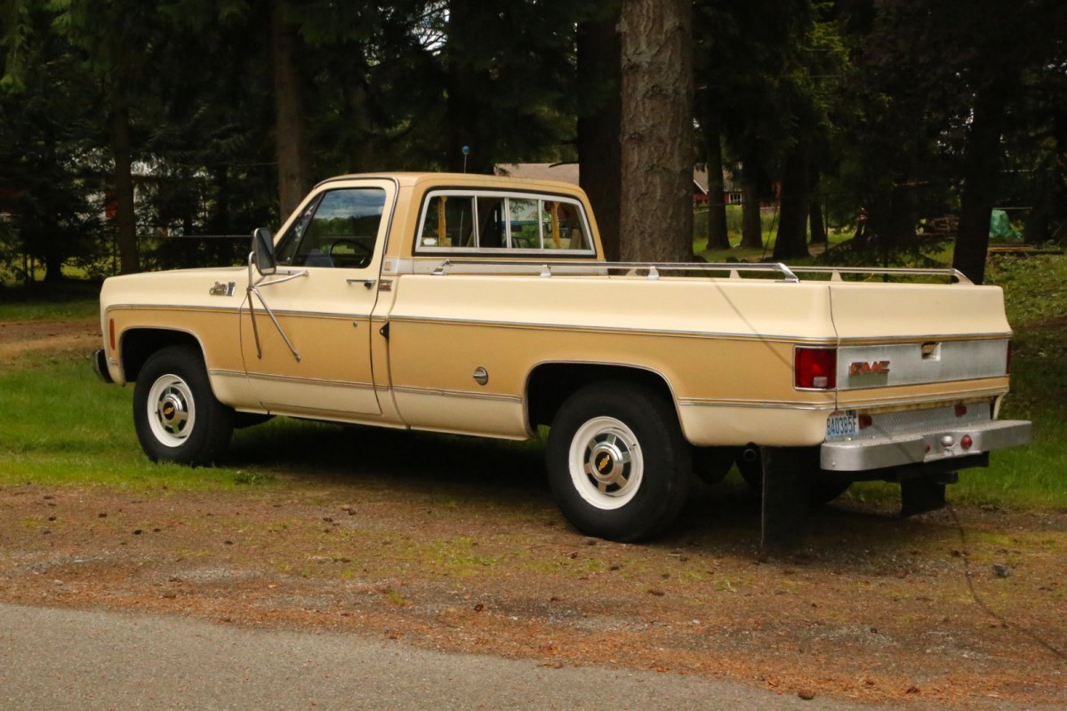 I have one very similar to this. A ’78 GMC Sierra Classic C35 one ton, single rear wheels and 9,000 GVW suspension option. Reverse the color sheme for mine, light beige down the sides, with the darker beige being the primary, including the roof. Mine is also a 454/TH400 with dual exhaust dual fuel tank truck with tilt wheel (no cruise), intermittent wipers, and factory A/C. Originally and still is a southern California truck with zero rust. Love the truck, it is awesome.