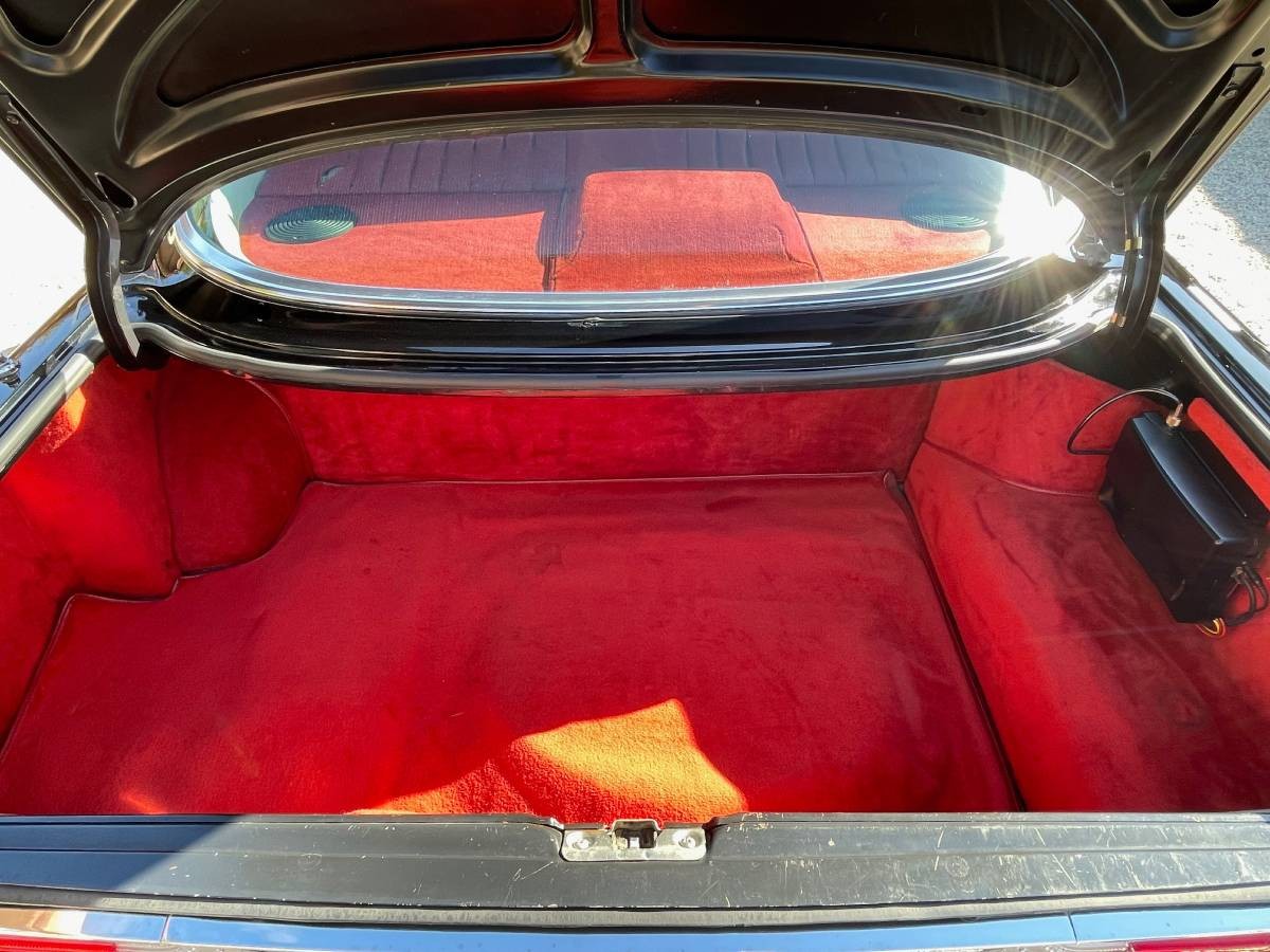 The red leather interior is described as being in “perfect condition” and it looks it. I would expect some sign of wear and degradation, especially after 44 years of use and 93K miles traveled but none is apparent – a testament to M-B’s quality of materials. That back seat is looking a little tight but that should come as no surprise. What is a surprise is the size of the trunk – it’s more accommodating than I would have thought.