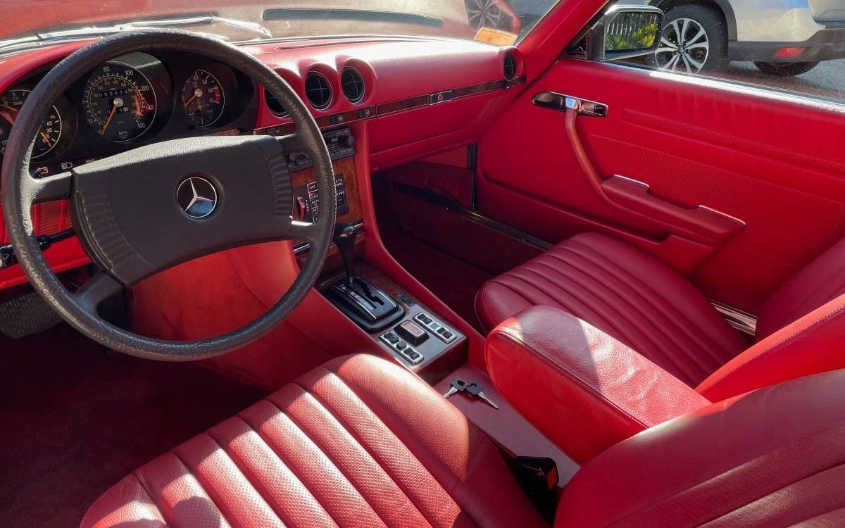 I have a 1977 450SLC that has been refurbished from the ground up at great expense by a previous owner. It is English Red with a red interior. The dash and center console were too red and were replaced by a new black dash and center console.