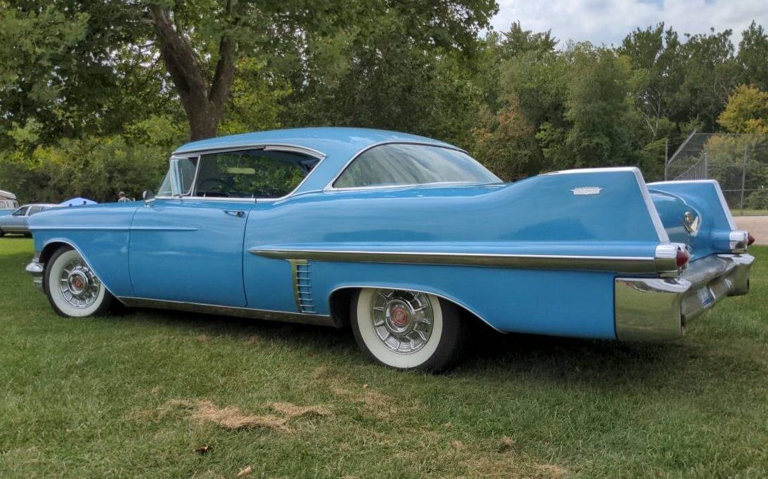 The car has been repainted in its original color but the lacquer paint exhibits some cracking. The rear bumper needs either elbow grease and polish (I like to start with bronze wool) or a much more expensive re-chrome job. While this coupe is one of the down-market Cadillacs – with the rare Eldorado Brougham being the paradigm of luxury – it has substantially identical body panels and most of the desirable options offered on the better models. It runs and drives and its issues are minor. But does all that justify the price? What do you think?