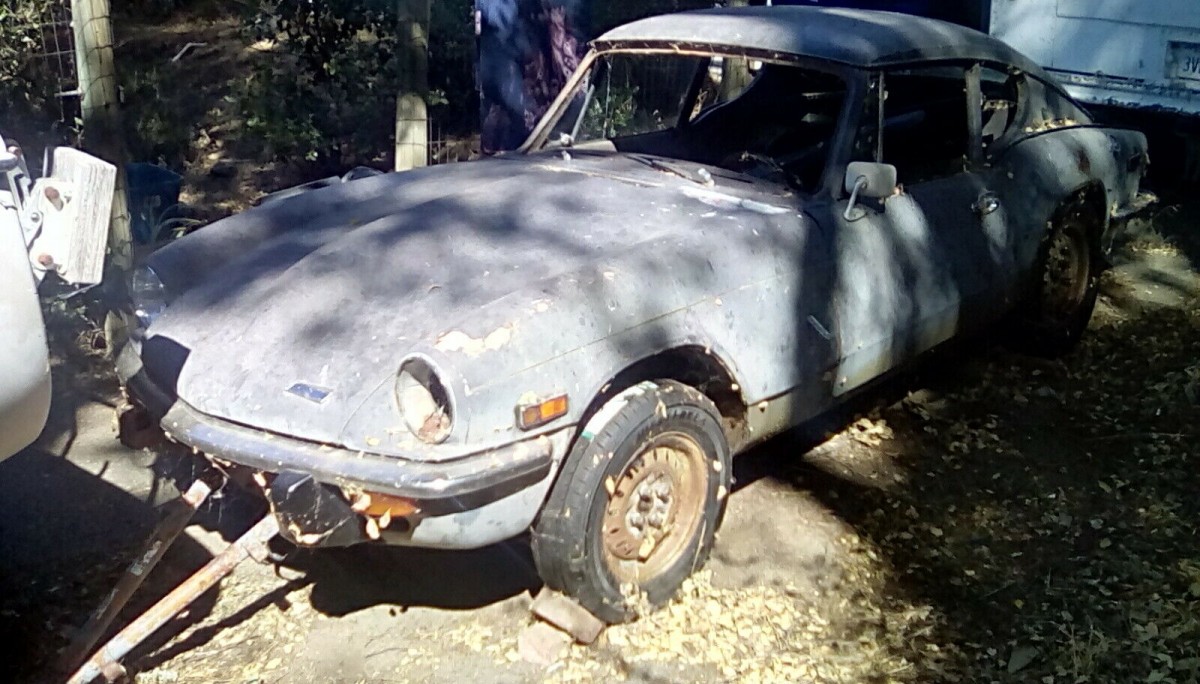 Good Lord, it’s the GT6 from Hades. Pretty rare car, didn’t see many GT6’s. They were neat cars, to see one like this is pretty sad. With the cost of parts today, while available, you’ll have a fortune in this.