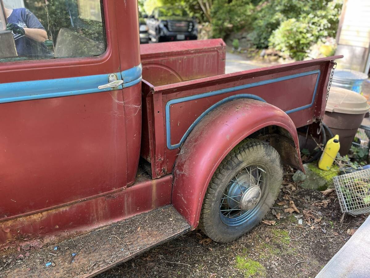 So, would this 1931 Model A pickup be a good candidate for a Model A restoration? On the surface, probably not. The first obstacle is the price. At $5,900 as an asking price, there is Model As in better condition out there. Just as water finds its level, so will the price of this Model A. Looking beyond the mold and debris, this may be a decently solid truck. The seller tells us that there is some rust on this long-sitting truck. However, the claim is made that it is still solid overall. It was originally purchased in Montana but brought to Washington sometime in the mid-1980s. Along the way someone has replaced the wood slats in the bed with a sheet of steel and a set of 1935 Ford wheels has been added.