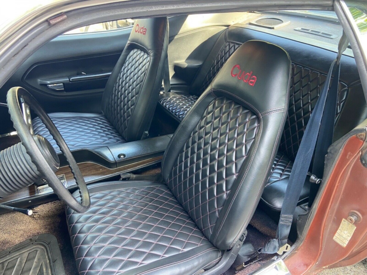 A true AAR Cuda had the dual exhaust exit in front of the rear wheels as well. That diamond interior is WAAAAY OUT OF PLACE!!! Put that in some 1930s FORD!!!!.