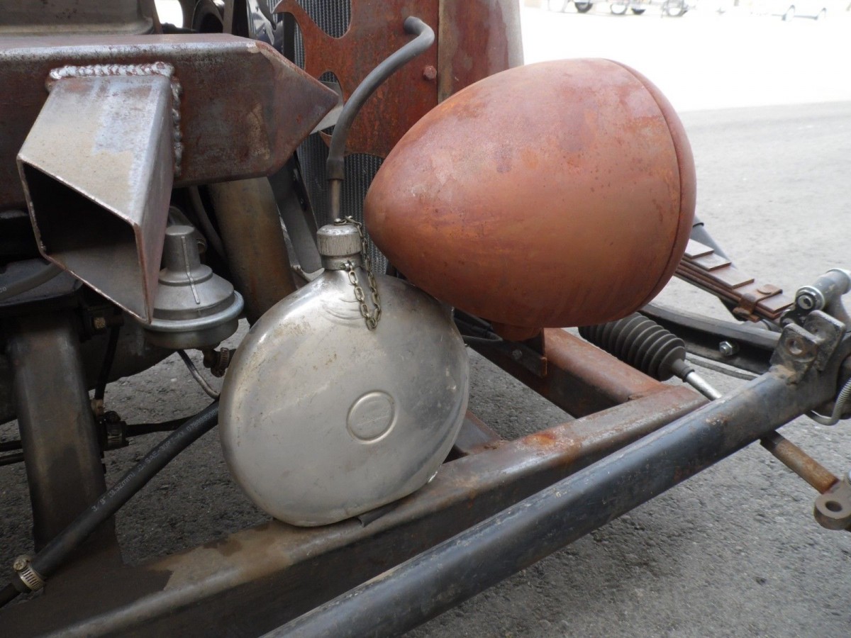 This is a further illustration of what I mean by details. An overflow tank that has been fashioned from a genuine early drink canteen. The mind boggles at the number of hours that must have gone into the design and building of this Rat Rod. The seller must have a fertile mind because he undertook all of this type of design and construction work himself. Since he completed the build the car has traveled mere 581 miles. Personally, after so much work I don’t think that I could bear the thought of parting with it.