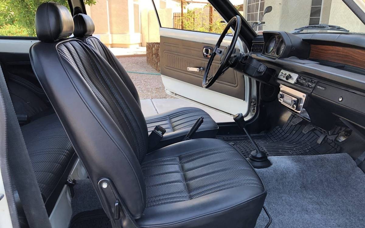 This Civic originally came with a 1.5 liter 4 cylinder engine that developed 60 horsepower. The swapped 1.8 liter engine from the 1981 should produce quite a bit more horsepower than that and was rated at 108 horsepower by Honda in 1981. The upgraded engine came out of a Honda Accord and is backed by a 5 speed transmission. The seller states that the car gets 33 + miles per gallon and is super fun to drive. My friend had one of these in high school and I was amazed how much fun it was to drive. My guess is that it was so light and small and it can zip around pretty well. The white paint looks nice and there are no visible signs of rust.