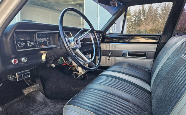 A complete restoration was begun in 2001 to create the police car replica you see here. The original color was light blue, and the Plymouth is still powered by its factory 318 cubic inch V8 with a Torqueflite automatic transmission. Both have been rebuilt, and it’s likely the Malloy/Reed car had something more powerful under the hood. The interior is perhaps a bit nicer than what the Adam-12 guys had because it’s the upgraded Belvedere II.
