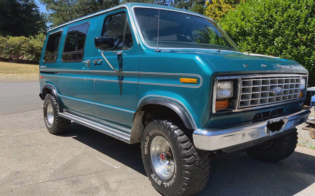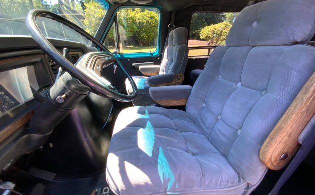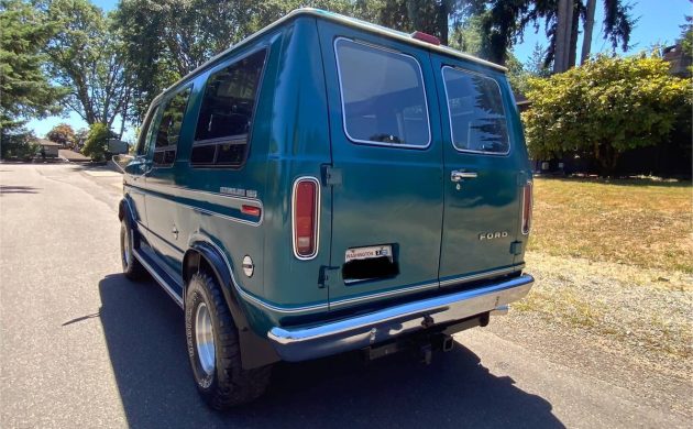One of several V8s resides in here – choices ran from Ford’s 302 cu. in. up to a 460; an automatic transmission handles gear changes. We aren’t told who performed the 4×4 conversion, but Quigley Motor Company and Ujoint Offroad both do the work. The shorty’s wheelbase measures 124″ and its overall length is 187″; the standard van came in at 138″ and 207″, respectively. The seller quotes the odometer at 98,000 miles and indicates he needs cash so he won’t take trades.