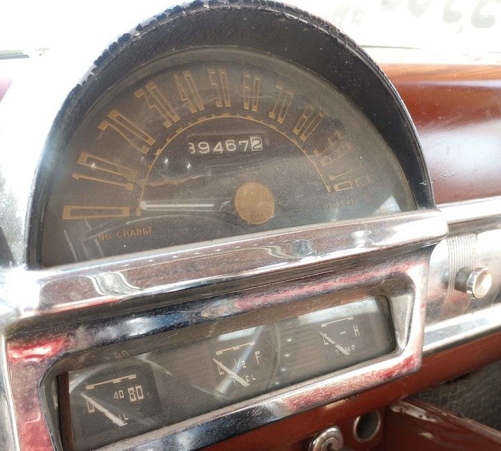 “It does run and drive and stop, however it is not roadworthy,” says the vendor. “It needs tires, possibly a tune-up. The floorboards are pretty decent with a couple of rust spots. The body is in fair condition, with all original paint. There’s not one drop of Bondo on the car.” The headlights and taillights work, as well as the turn signals.