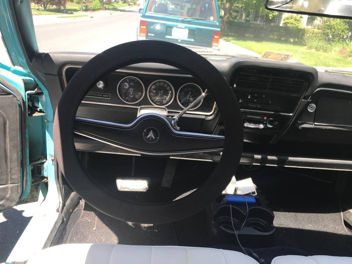 I think that the styling of the Hornet is quite tidy, and it is only helped in this case by the combination of Surfside Turquoise paint and a white vinyl top. The paint looks to be in pretty decent order, with no signs of patchiness, and a nice shine across the entire vehicle. The top is less promising, and it appears as though it might be split or separating in a couple of spots. Making matters worse is the rust that is just beginning to reveal itself from under the lower vinyl trim strips on the rear quarter panels. Sadly, that isn’t the end of it, because there is also some bubbling around the rear wheel openings on both sides, along with some bubbles in the bottom corner of the passenger door. This is all unfortunate, but as long as the rust that is visible appearing under the edge of the vinyl isn’t too severe, then it need not be the end of the world. The reality is that if we’re talking about rust issues, the sooner these can be addressed, the better. However, there is no reason why the next owner couldn’t enjoy the car as it currently stands during the warmer months, and save the rust repairs as a Winter project. Beyond that, the trim, chrome, and the glass, all looks to be in good order. Also included in the sale is a waterproof car cover, and this is said to be brand new.
