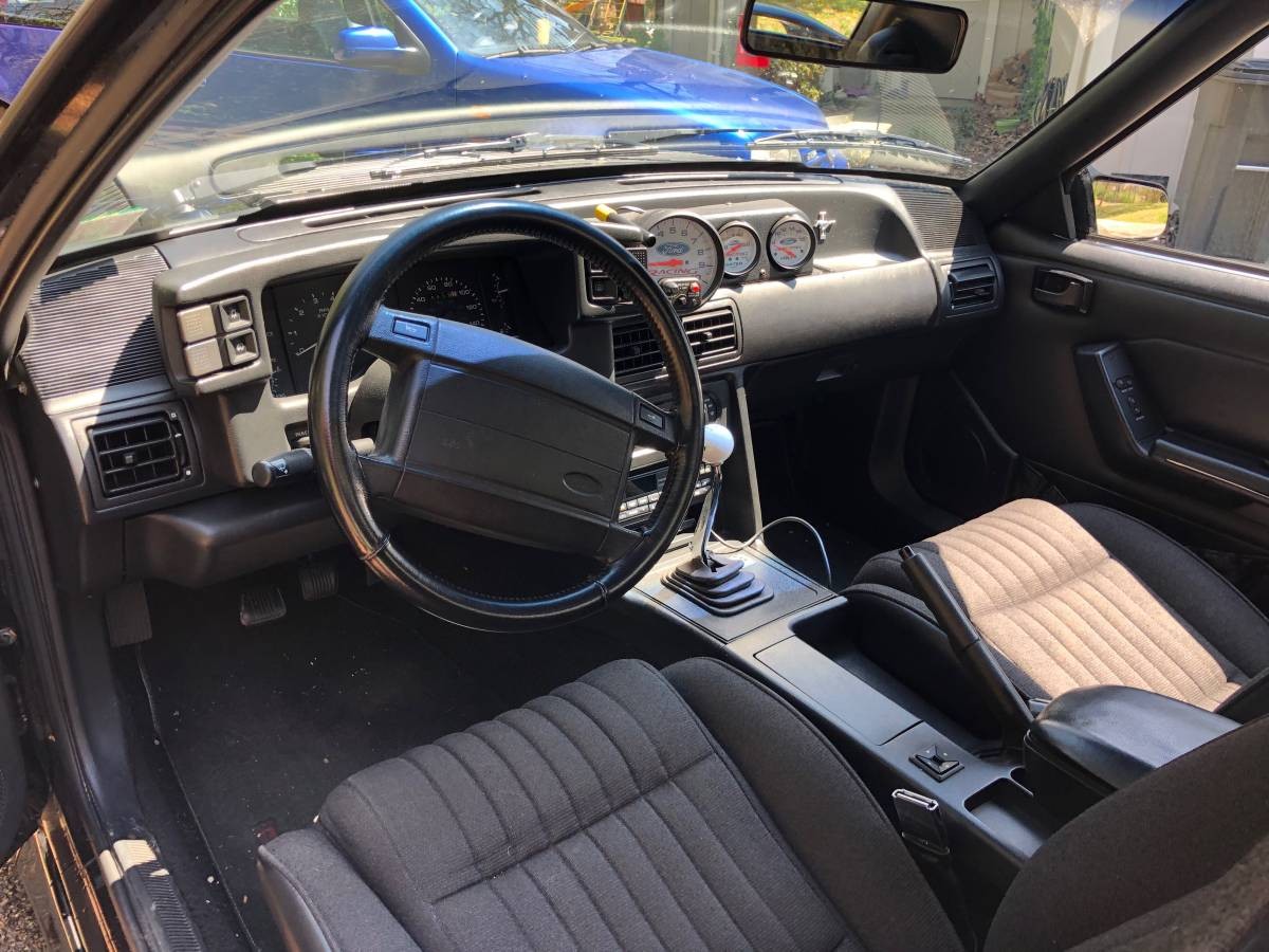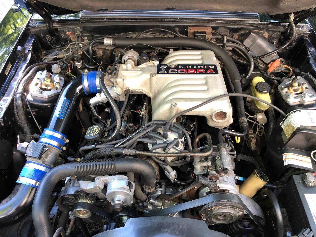 BBK cold air inlet is the only mod I see under the hood, nice Hurst shifter not the shorter ripper shifter, clean car with mods that only enhance the driving experience, why change it. Install the 3.73 ‘s, although these 5.0’s are a little rough getting off the line with stock gearing. I can’t remember if the Cobra had 3.08’s or a lower gear…..stock.